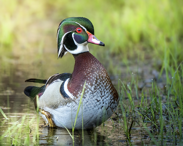 A male wood duck photographed on an early spring morning in central Wisconsin