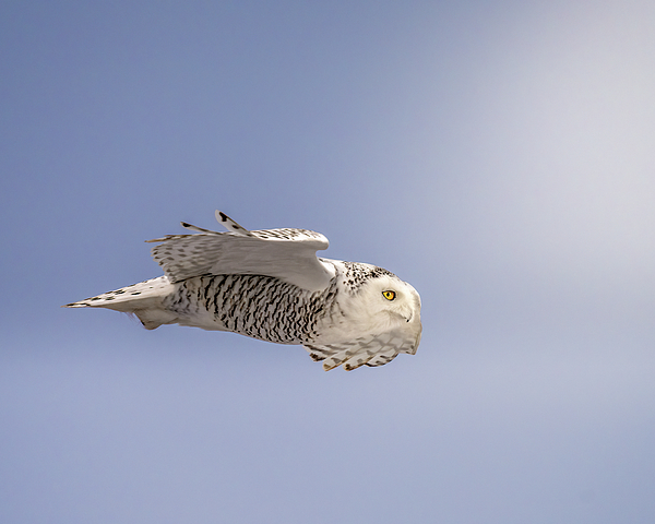 This female snowy owl was photographed while flying between electrical pole perches and hunting in the open farm fields of northeast Wisconsin.
